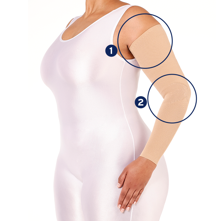 Spezielle Ausformung der Armversorgung im Bereich des Oberarms. Die Außenseite ist in Richtung des Schultergelenks erhöht, so kann eine anatomisch angepasste Kompressionswirkung bis an die Basis des Schultergelenks ermöglicht werden.